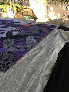 Discovered once I opened the fabric up that there was a flaw in the piece. I hadn't planned on piecing the back, so discarded the idea of basting the quilt during my group time there.
