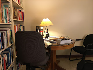 We took a break Saturday and went to campus to install some film on a window in his office so the students would not be peeking in at him while he was working.